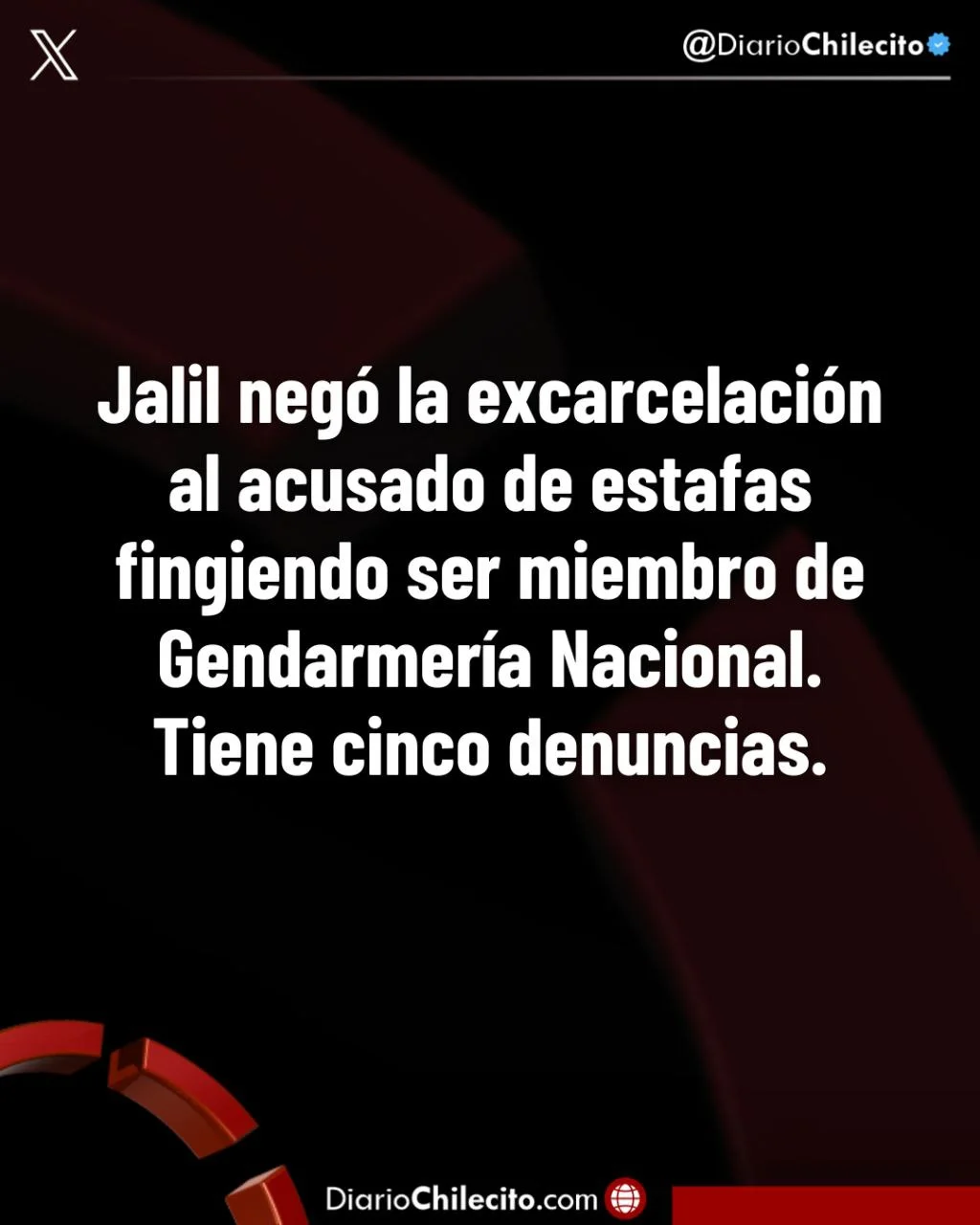 - Jalil negó la excarcelación al acusado de estafas fingiendo ser miembro de Gendarmería Nacional. Tiene cinco denuncias.