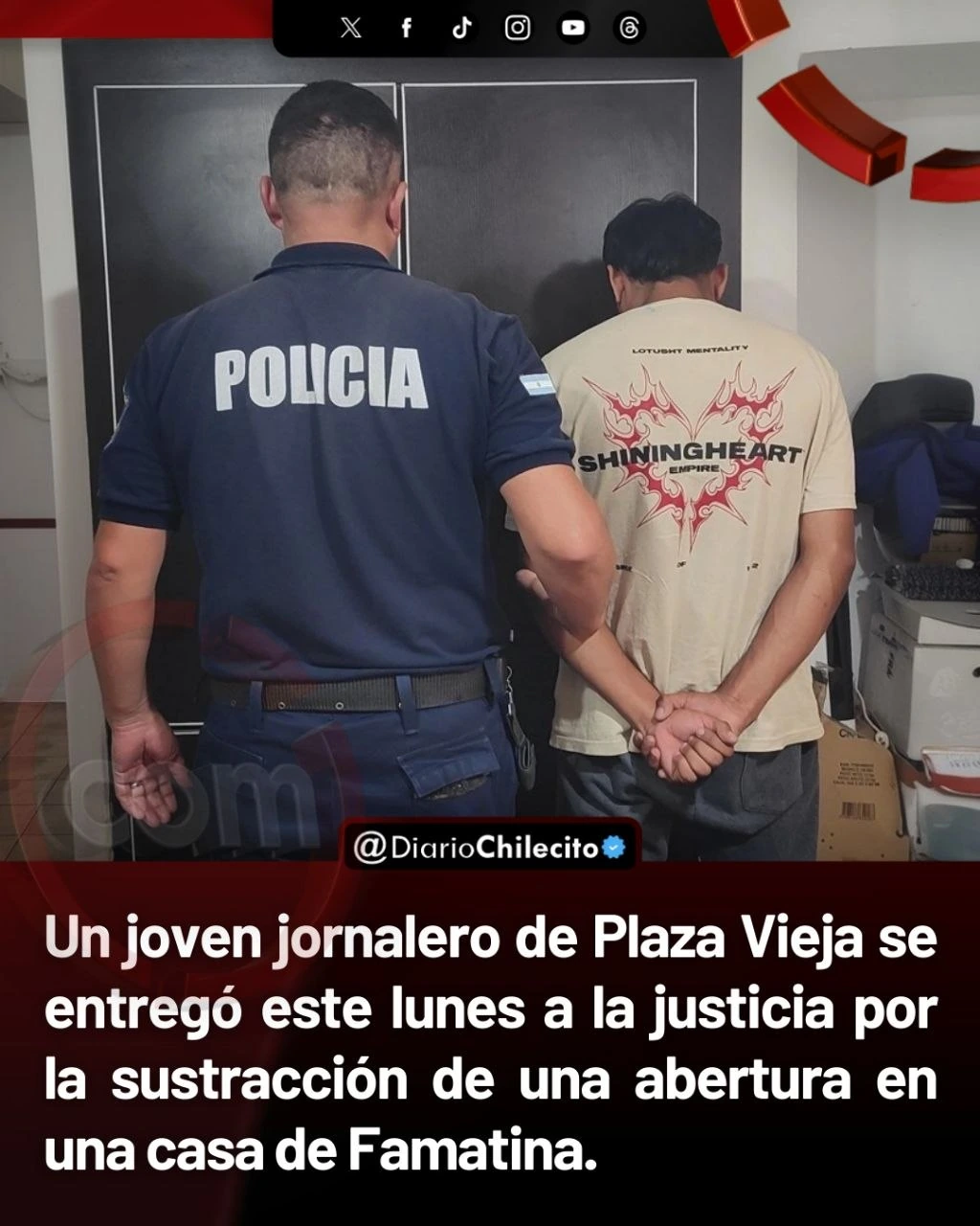 - Un joven jornalero de Plaza Vieja se entregó este lunes a la justicia por la sustracción de una abertura en una casa de Famatina.
