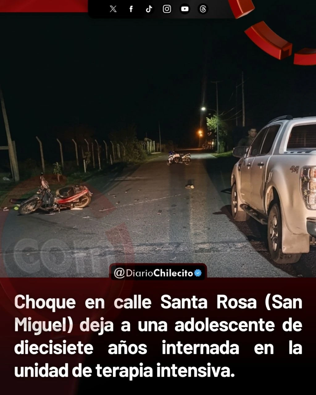 - Choque en calle Santa Rosa (San Miguel) deja a una adolescente de diecisiete años internada en la unidad de terapia intensiva.