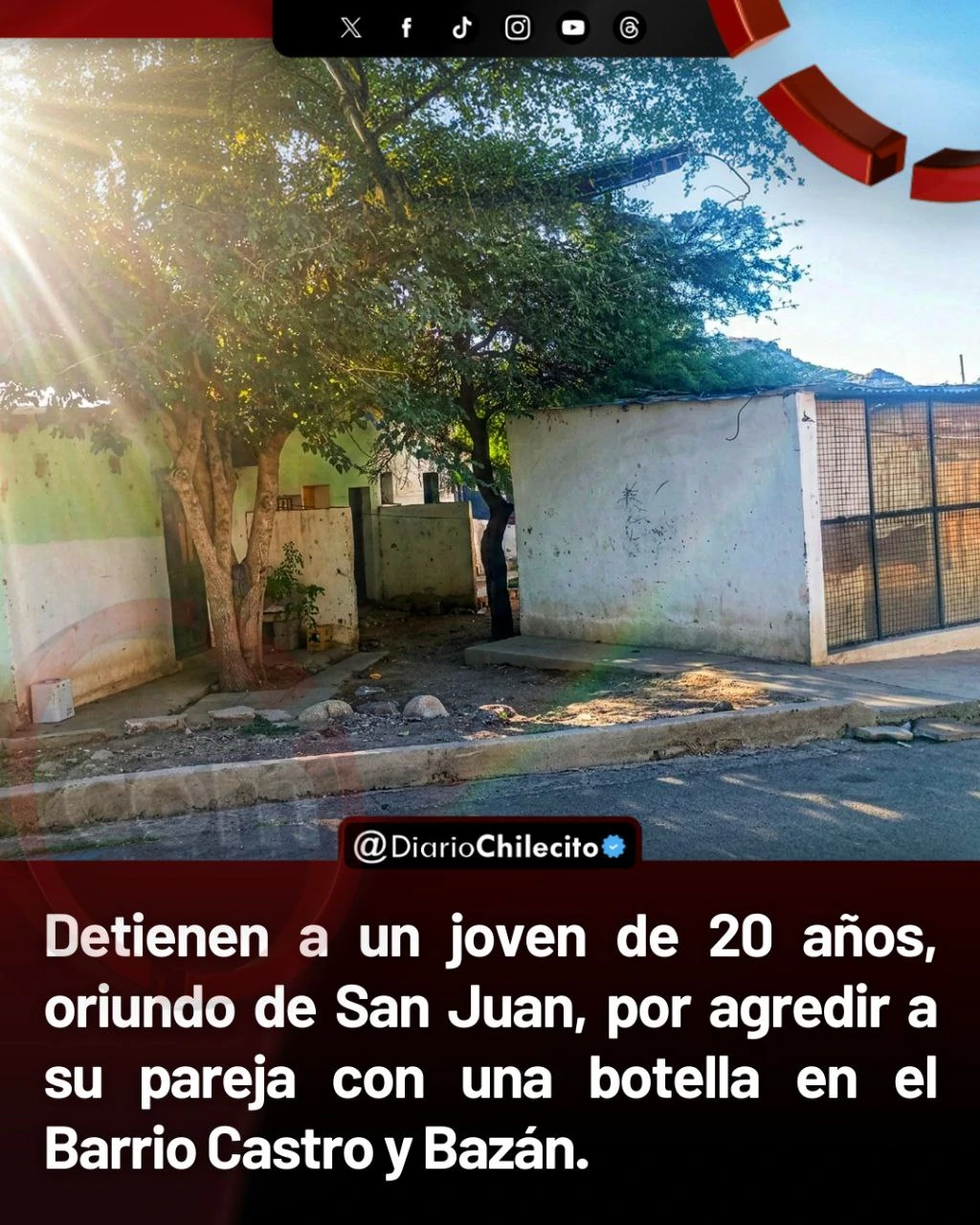 - Detienen a un joven de 20 años, oriundo de San Juan, por agredir a su pareja con una botella en el Barrio Castro y Bazán.
