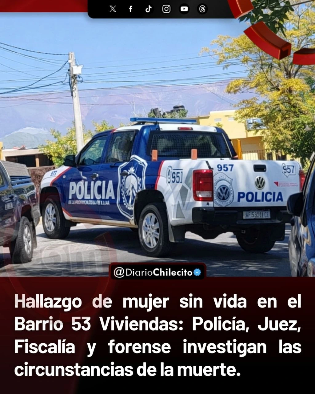 - Hallazgo de mujer sin vida en el Barrio 53 Viviendas: Policía, Juez, Fiscalía y forense investigan las circunstancias de la muerte.