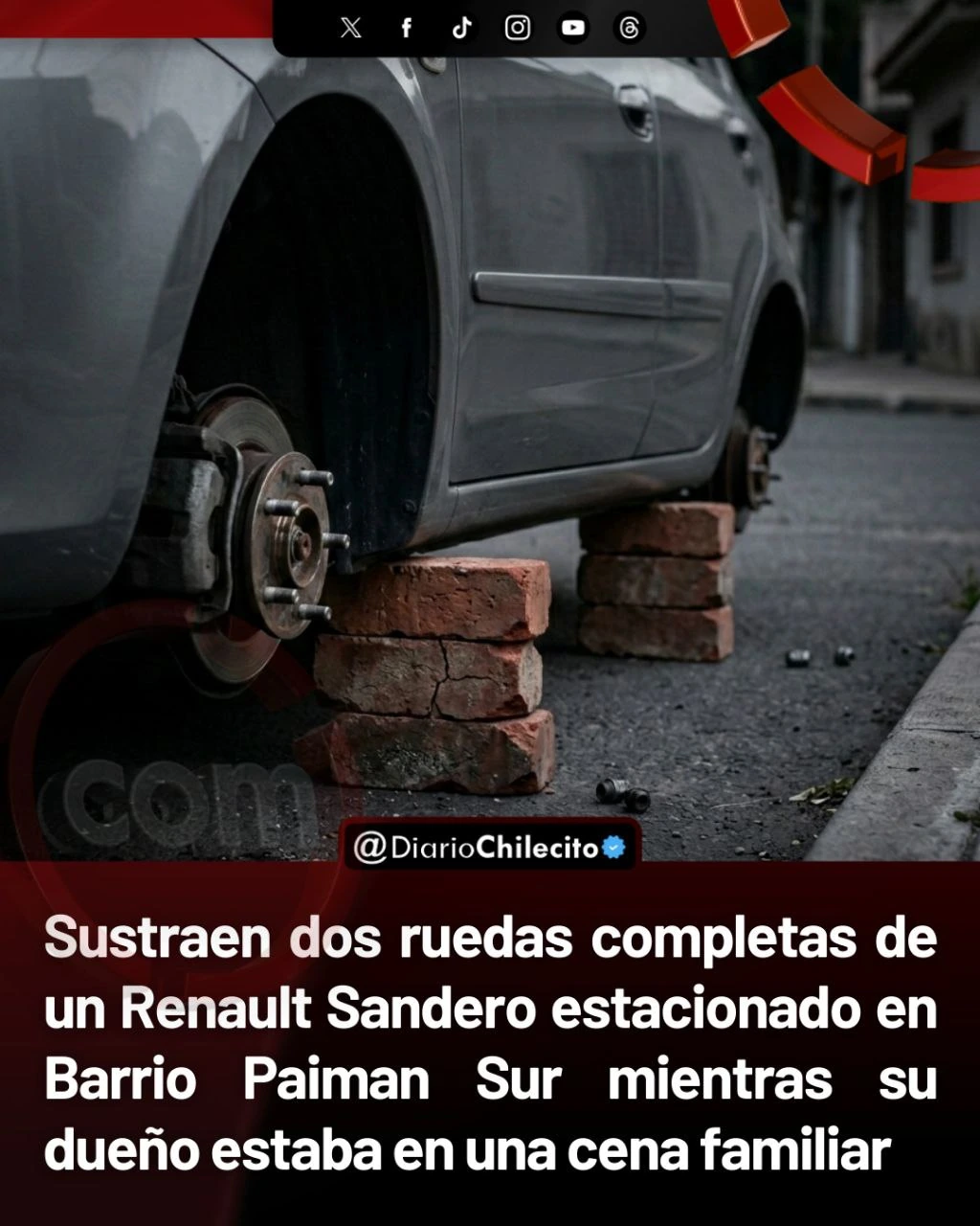 - Sustraen dos ruedas completas de un Renault Sandero estacionado en Barrio Paiman Sur mientras su dueño estaba en una cena familiar.