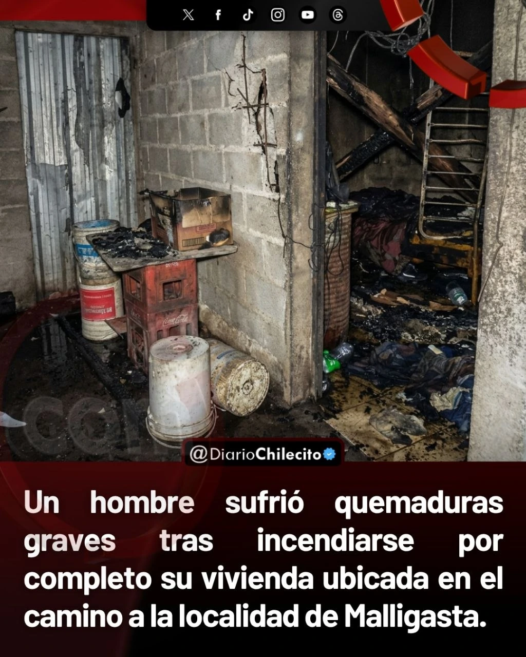 - Un hombre sufrió quemaduras graves tras incendiarse por completo su vivienda ubicada en el camino a la localidad de Malligasta.