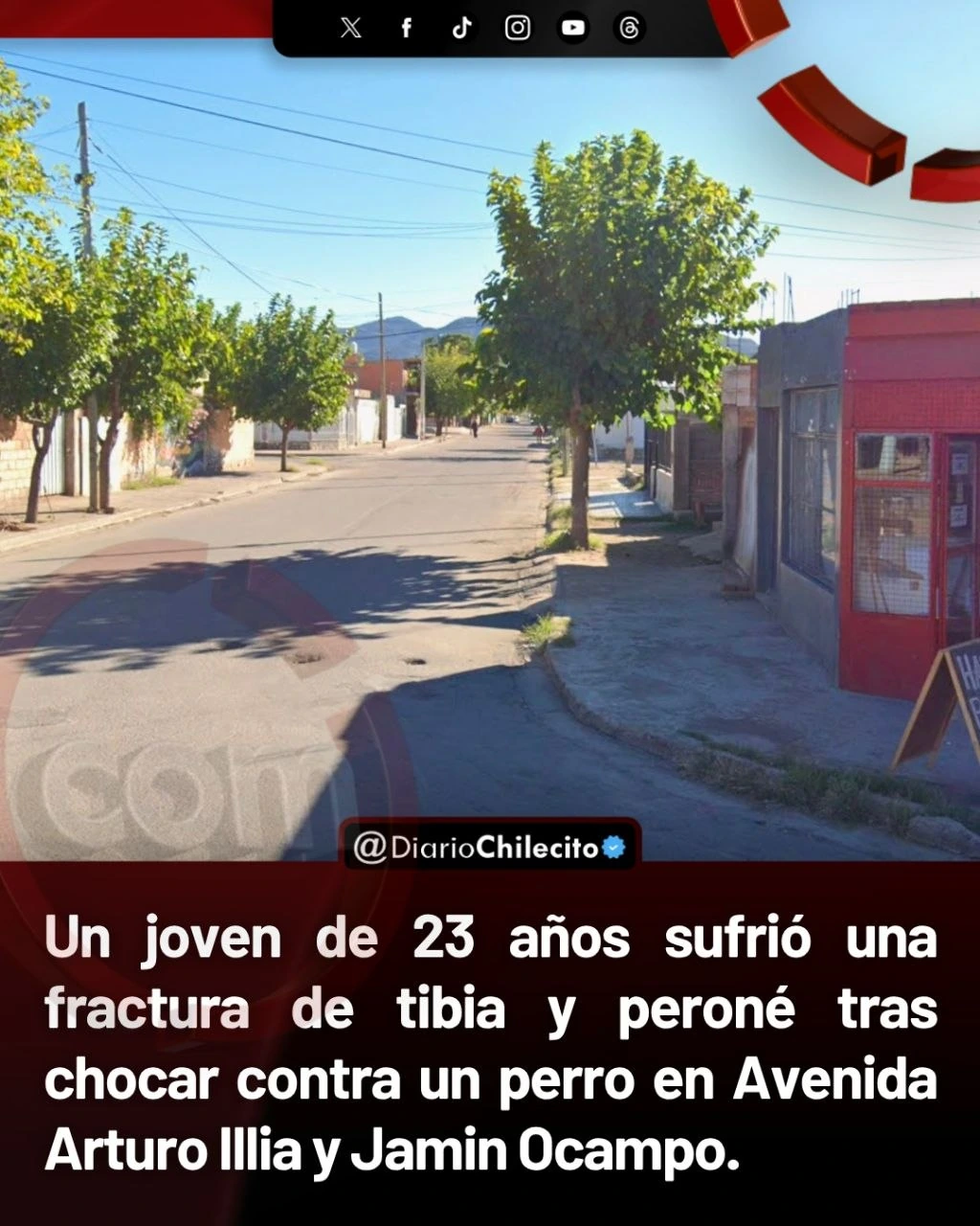 - Un joven de 23 años sufrió una fractura de tibia y peroné tras chocar contra un perro en Avenida Arturo Illia y Jamin Ocampo.