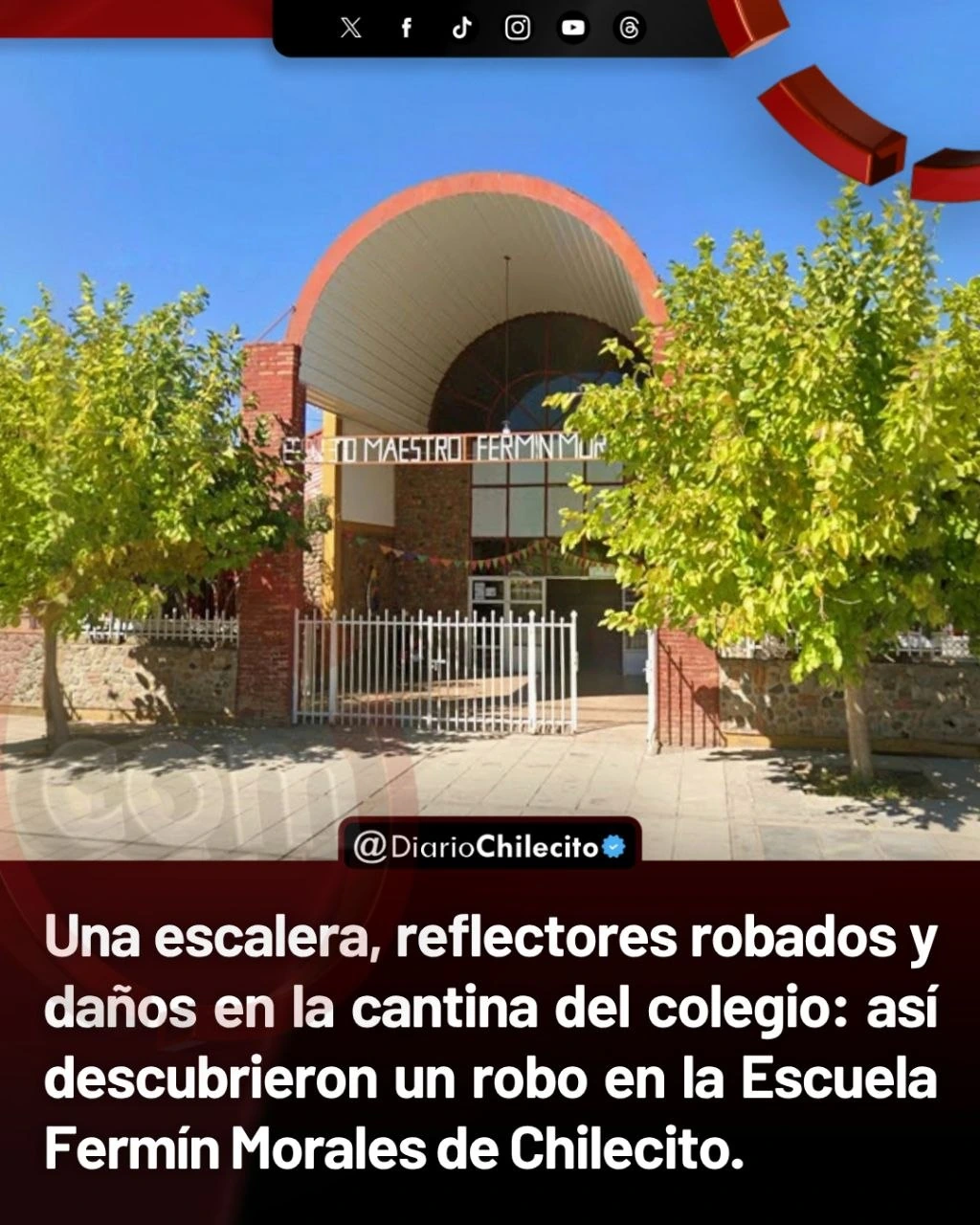 - Una escalera, reflectores robados y daños en la cantina del colegio: así descubrieron un robo en la Escuela Fermín Morales de Chilecito.