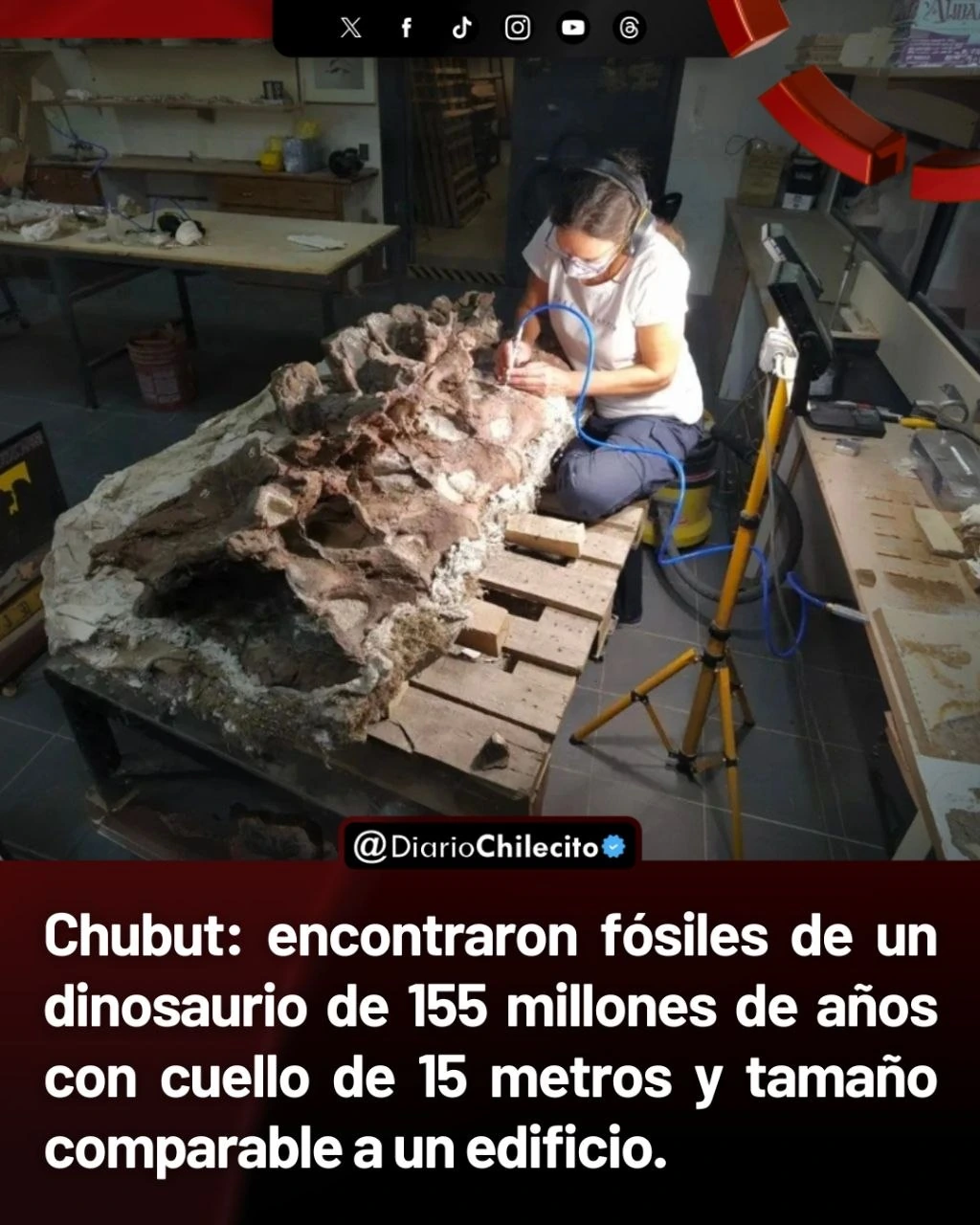 - Chubut: encontraron fósiles de un dinosaurio de 155 millones de años con cuello de 15 metros y tamaño comparable a un edificio.
