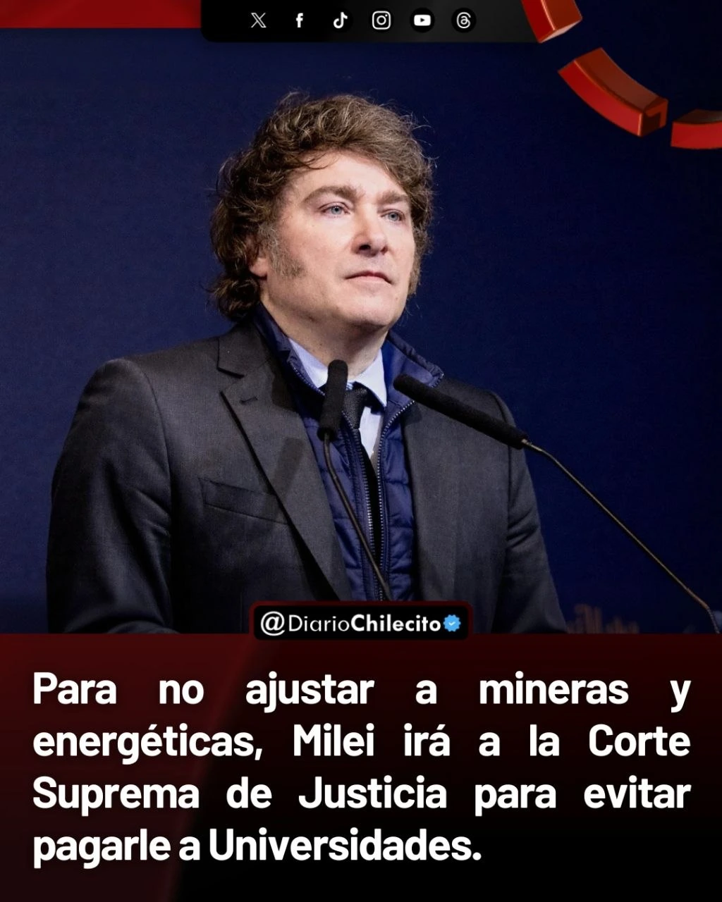 - Para no ajustar a mineras y energéticas, Milei irá a la Corte Suprema de Justicia para evitar pagarle a Universidades.