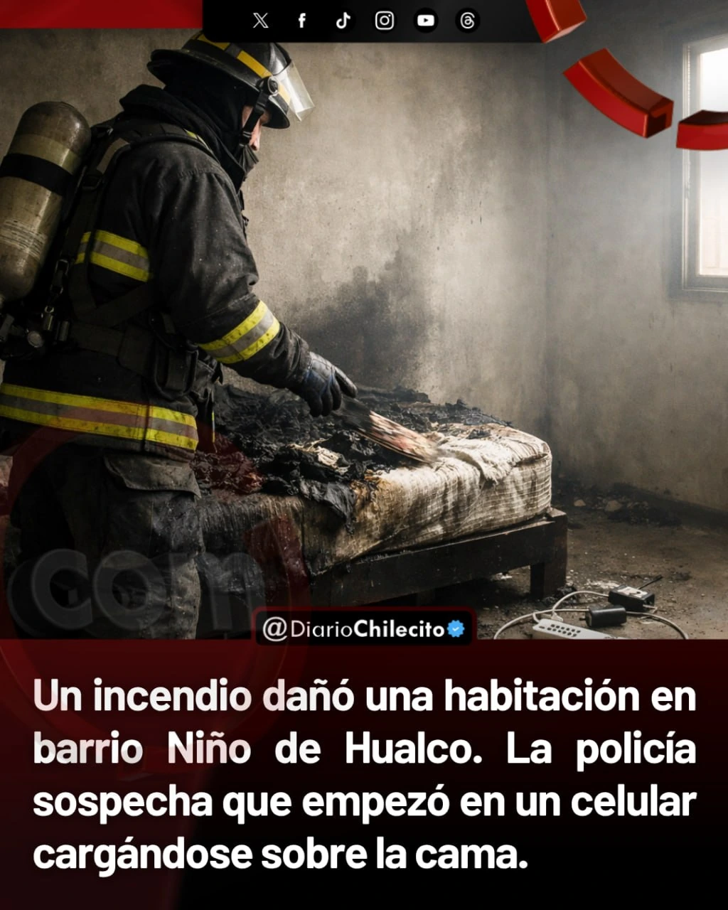 - Un incendio dañó una habitación en barrio Niño de Hualco. La policía sospecha que empezó en un celular cargándose sobre la cama.
