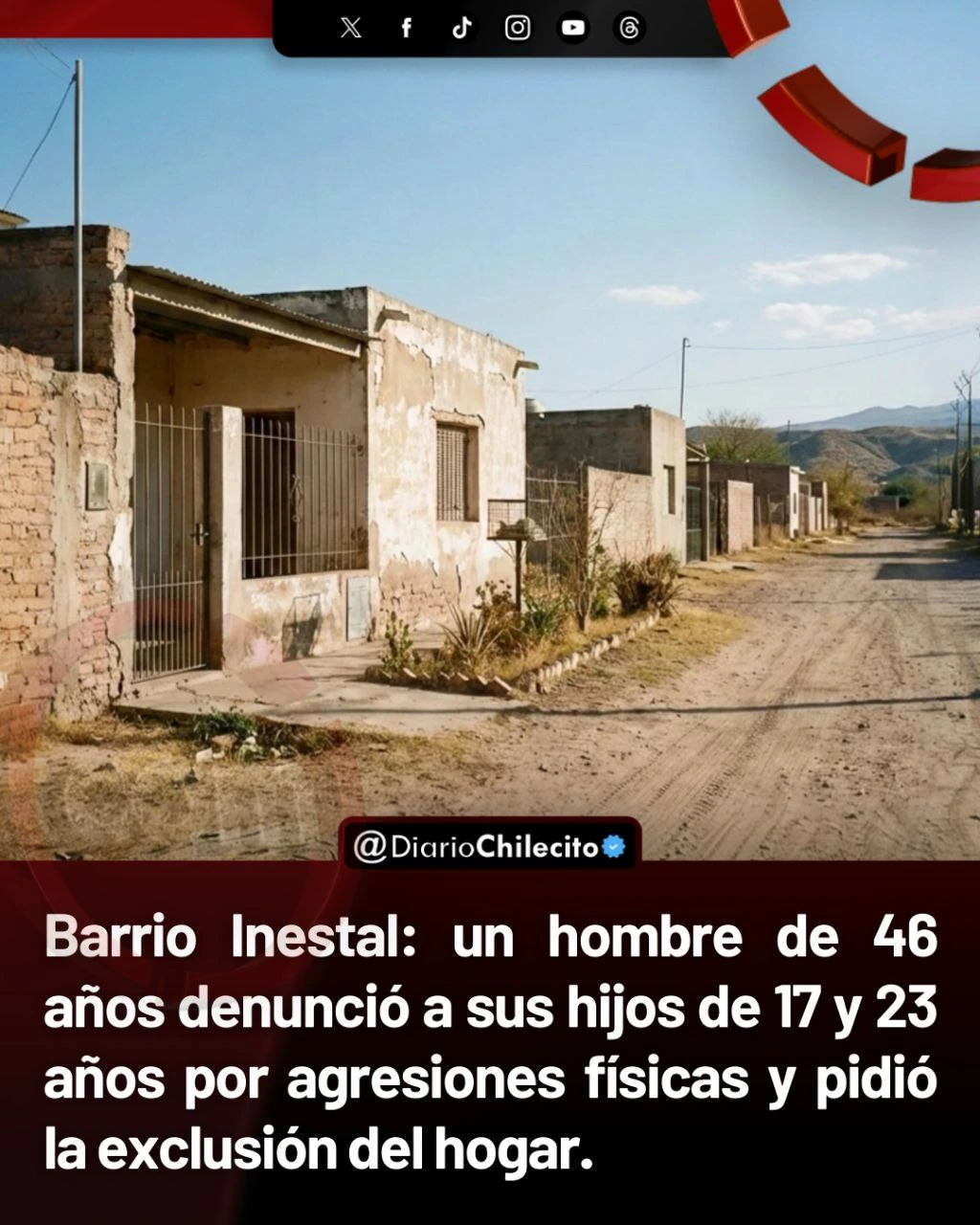 - Barrio Inestal: un hombre de 46 años denunció a sus hijos de 17 y 23 años por agresiones físicas y pidió la exclusión del hogar.