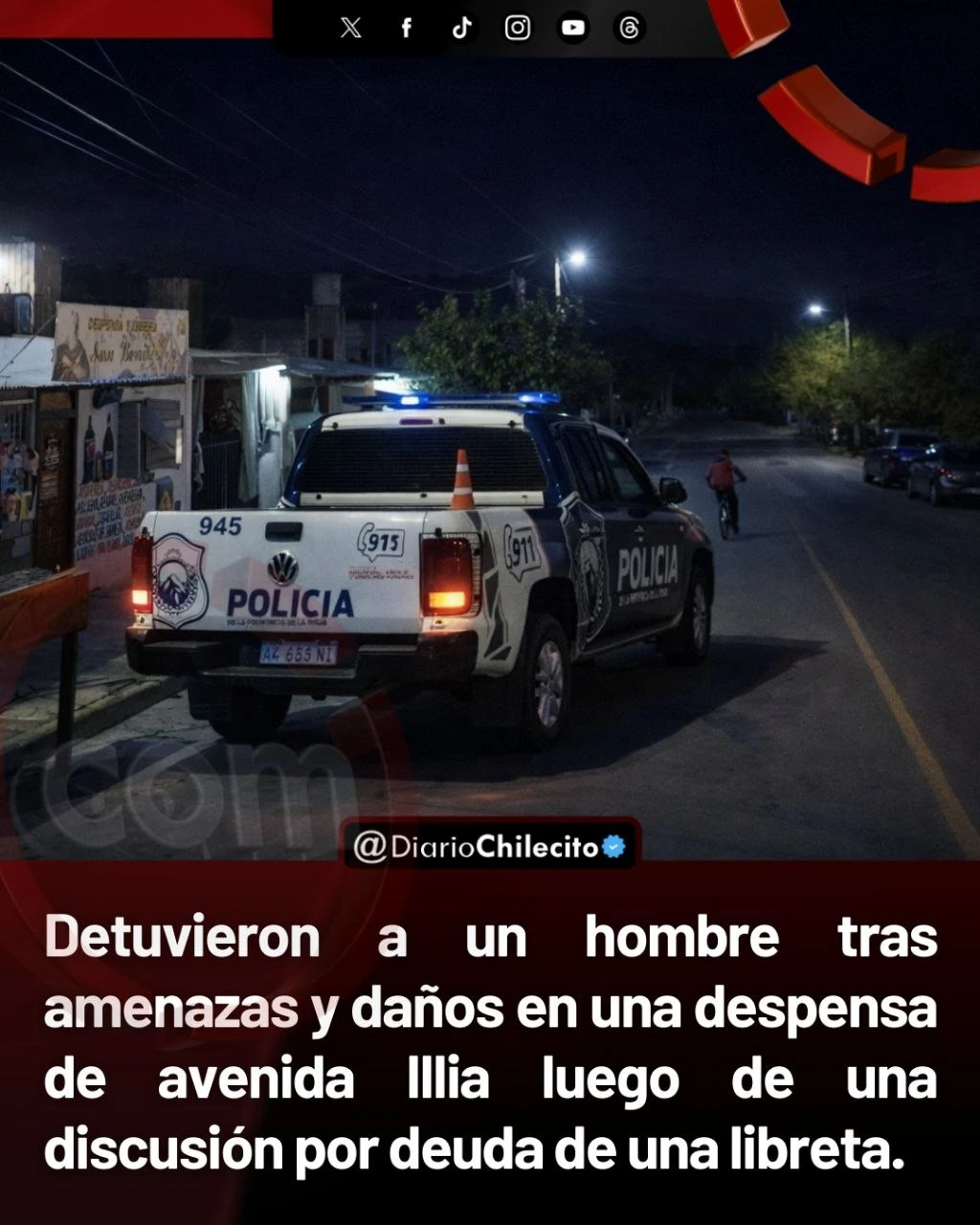 - Detuvieron a un hombre tras amenazas y daños en una despensa de avenida Illia luego de una discusión por deuda de una libreta.