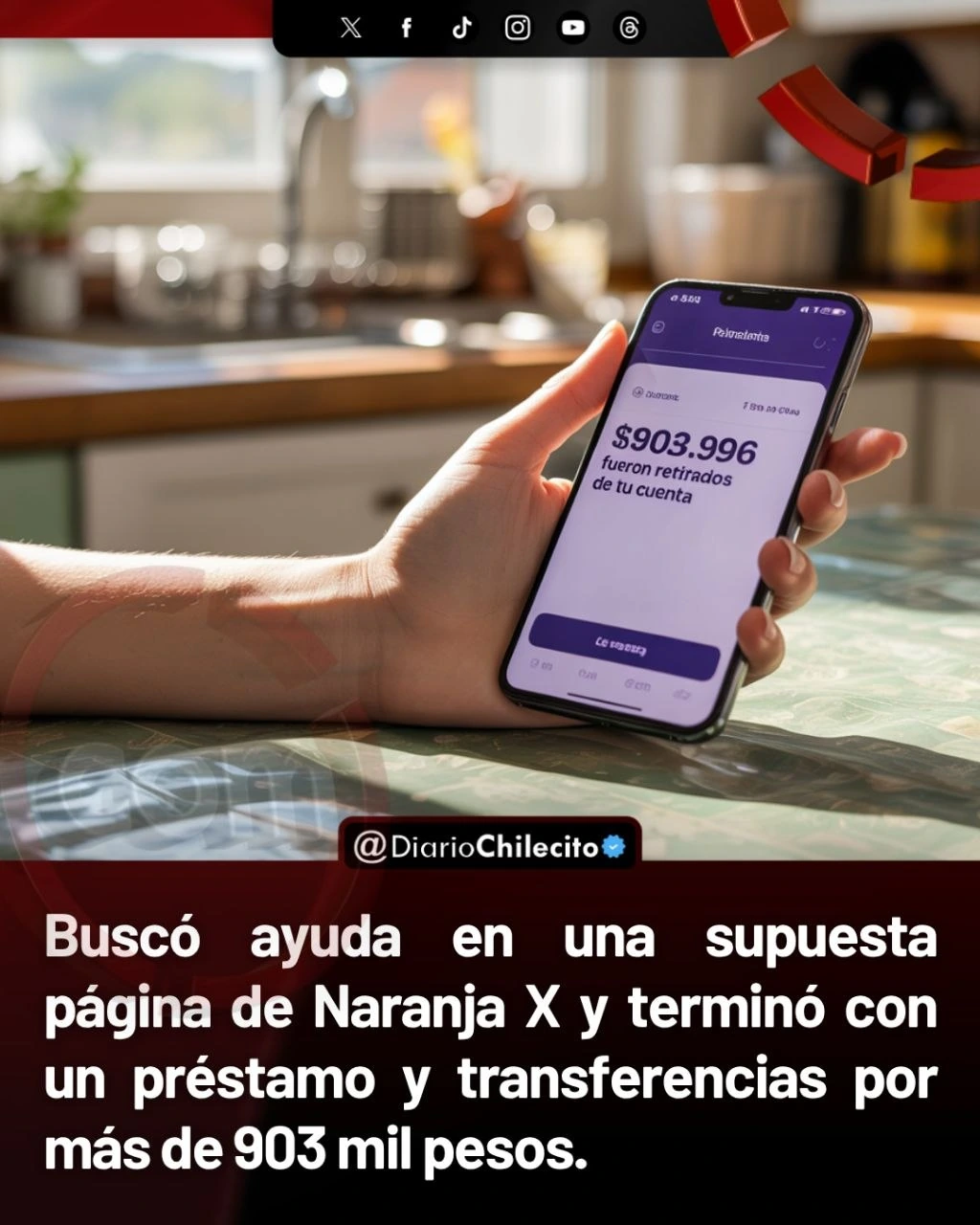 - Buscó ayuda en una supuesta página de Naranja X y terminó con un préstamo y transferencias por más de 903 mil pesos.