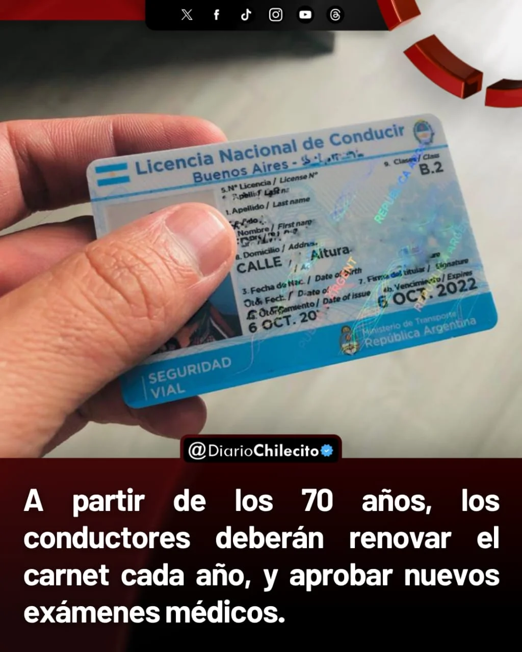 ● A partir de los 70 años, las personas que manejen en Argentina deberán renovar su carnet de conducir cada año y aprobar un examen médico que evalúe su aptitud física y cognitiva. Así lo establece la normativa nacional que busca reforzar la seguridad vial, especialmente en zonas urbanas donde aumentaron los siniestros con adultos mayores al volante.