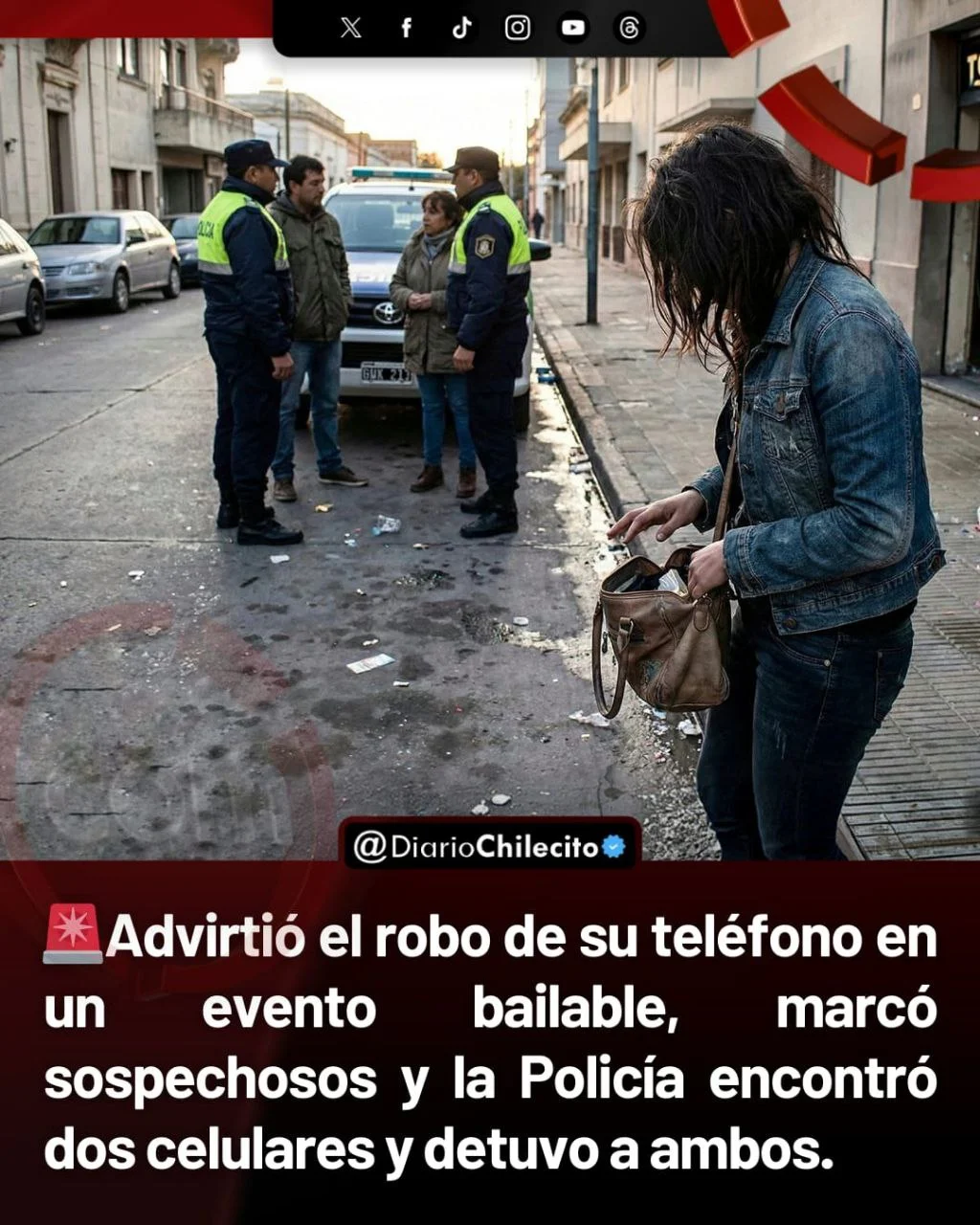 ● Un hecho de hurto se registró durante la madrugada de este 25 de diciembre, cerca de las 6.10, en un evento bailable realizado en una el centro de Chilecito. Una mujer advirtió que le faltaba su teléfono y dio aviso inmediato.