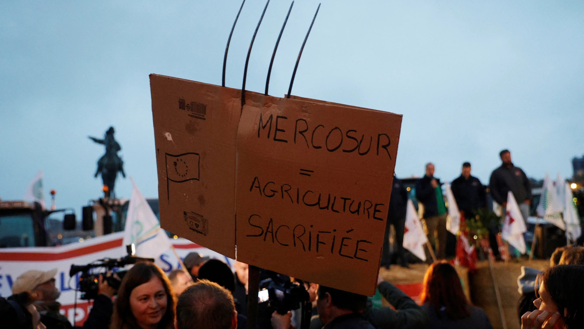 Durante las protestas, los agricultores bloquearon avenidas y llevaron tractores al centro de la ciudad, mostrando pancartas como “non au mercosur” (“no al Mercosur”). Reclamaron la intervención urgente del Ejecutivo antes de que la firma del acuerdo deje al campo francés expuesto al libre comercio. Amenazaron con nuevas movilizaciones especialmente durante el invierno boreal, cuando la actividad rural decae.