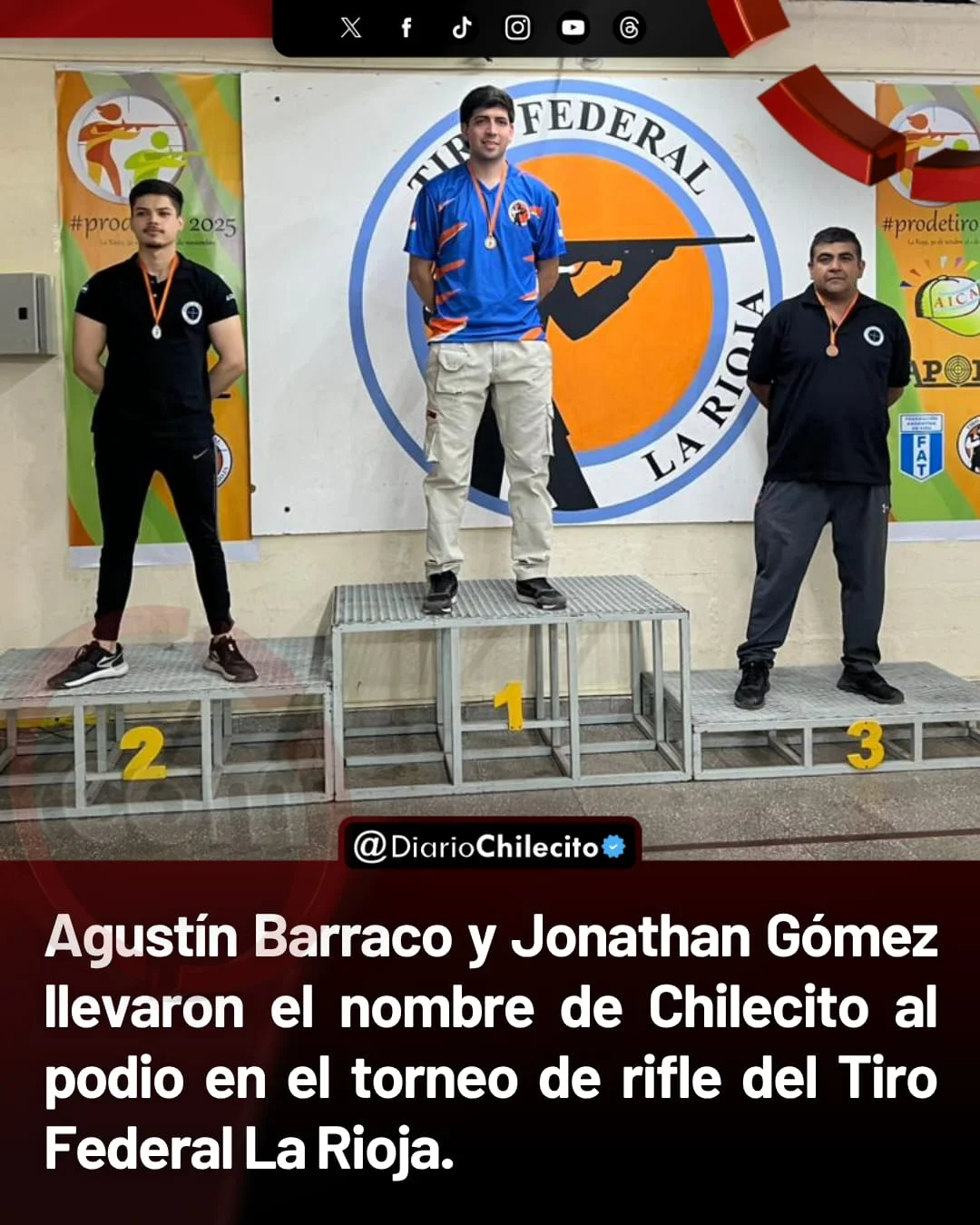 ● Los representantes de Tiro Federal Chilecito, Agustín Barraco y Jonathan Gómez, lograron destacarse en una competencia exigente, alcanzando el segundo y tercer puesto entre los mejores tiradores de la provincia.