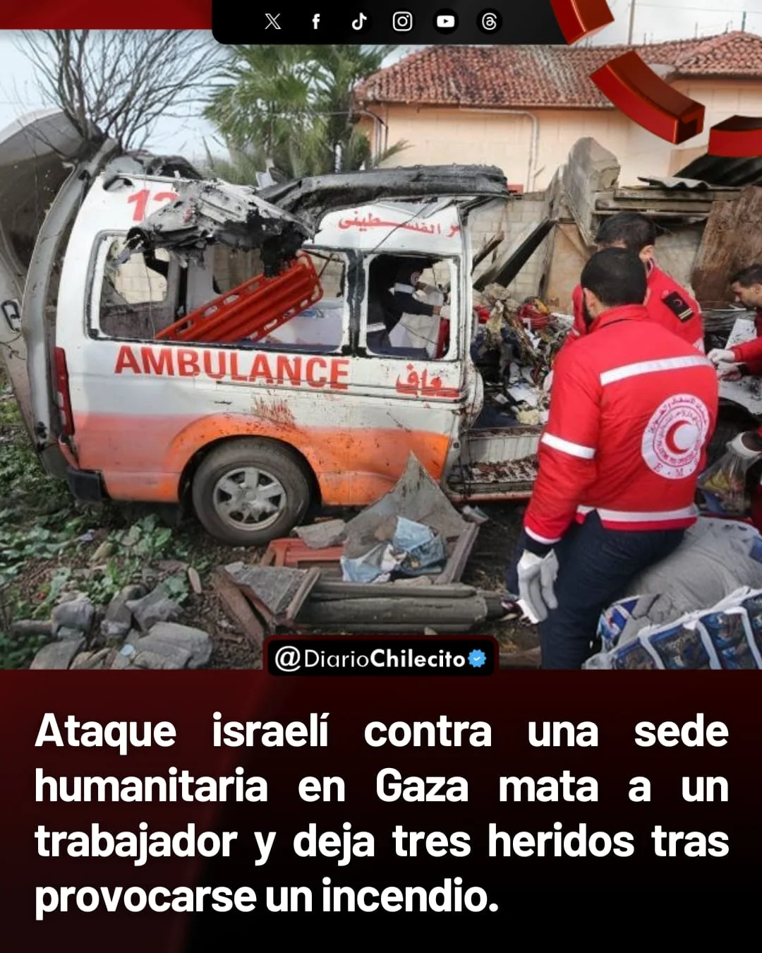 ● El personal humanitario identificado era Omar Isleem, uno de los empleados de PRCS. La comunidad denunció que el ataque alcanzó claramente el edificio marcado con el emblema de la Media Luna Roja, violando normas internacionales de protección humanitaria.