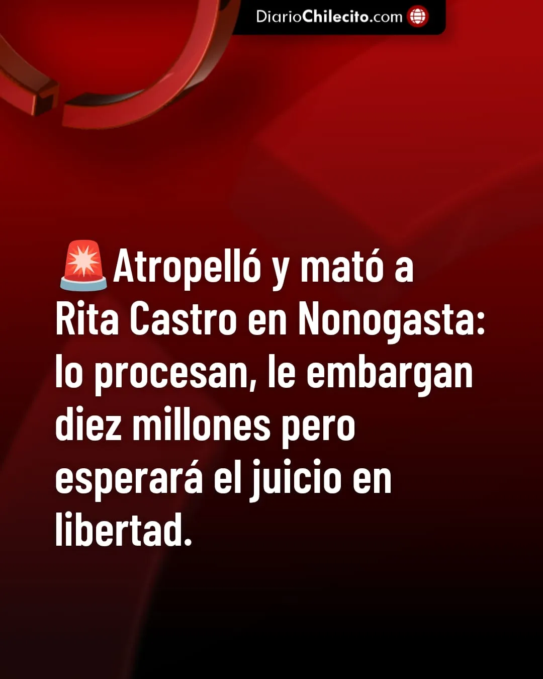 ● El juez Jorge Jalil dictó el procesamiento de Ignacio Cabrera por la muerte de Rita Castro, la vecina de 67 años atropellada en Nonogasta. La Justicia consideró al conductor del camión Mercedes Benz 608 responsable de homicidio culposo agravado por la conducción imprudente que terminó con la vida de la mujer en la Avenida Guillermo Iribarren.