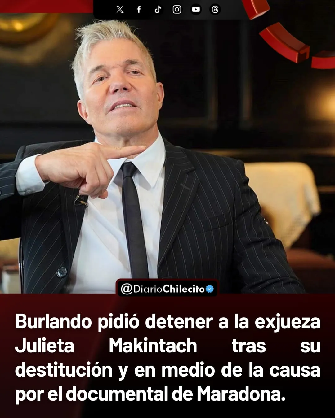 ● Fernando Burlando pidió la detención de la exjueza Julieta Makintach en San Isidro tras su destitución por el caso del documental grabado mientras llevaba el juicio por la muerte de Diego Maradona. El pedido importa porque apunta a evitar que influya sobre testigos clave que aún deben declarar.