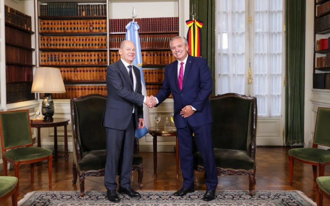 En el marco de una gira que tiene por objetivo “ampliar el comercio bilateral, el flujo de inversiones y el financiamiento en diversos proyectos”, el canciller alemán Olaf Scholz llegó a nuestro país y fue recibido por el presidente Alberto Fernández.