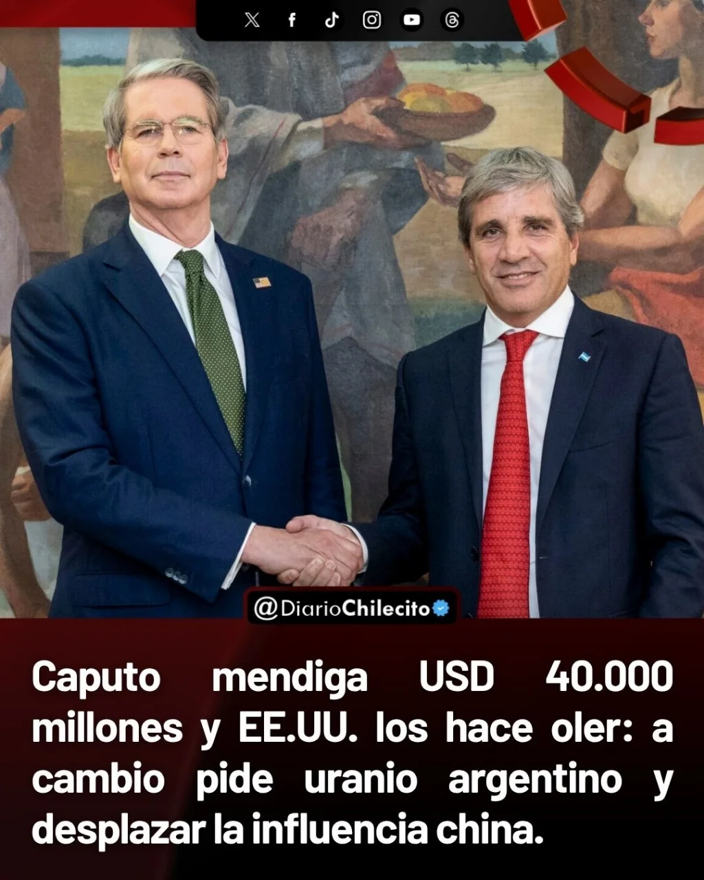 ● Luis Caputo había viajado a Estados Unidos en busca desesperada de un rescate financiero de 40.000 millones de dólares. Pero la promesa de dólares frescos vino con letra chica: Washington quiere acceso directo al uranio argentino y que China pierda espacio en áreas estratégicas del país.