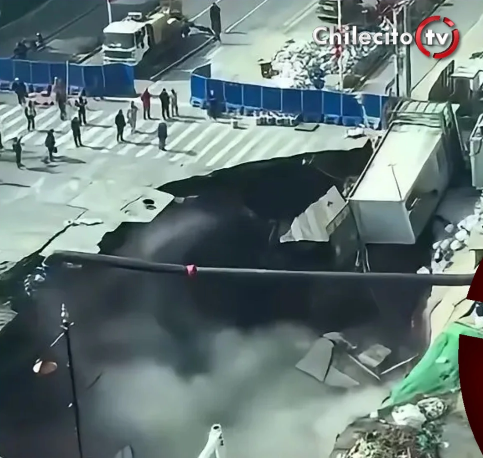 Un socavón de grandes dimensiones se produjo en una autopista en obra en Shanghai, China, tras el hundimiento de la calzada. El colapso ocurrió a la vista de transeúntes y quedó registrado por cámaras de seguridad instaladas en la zona.
