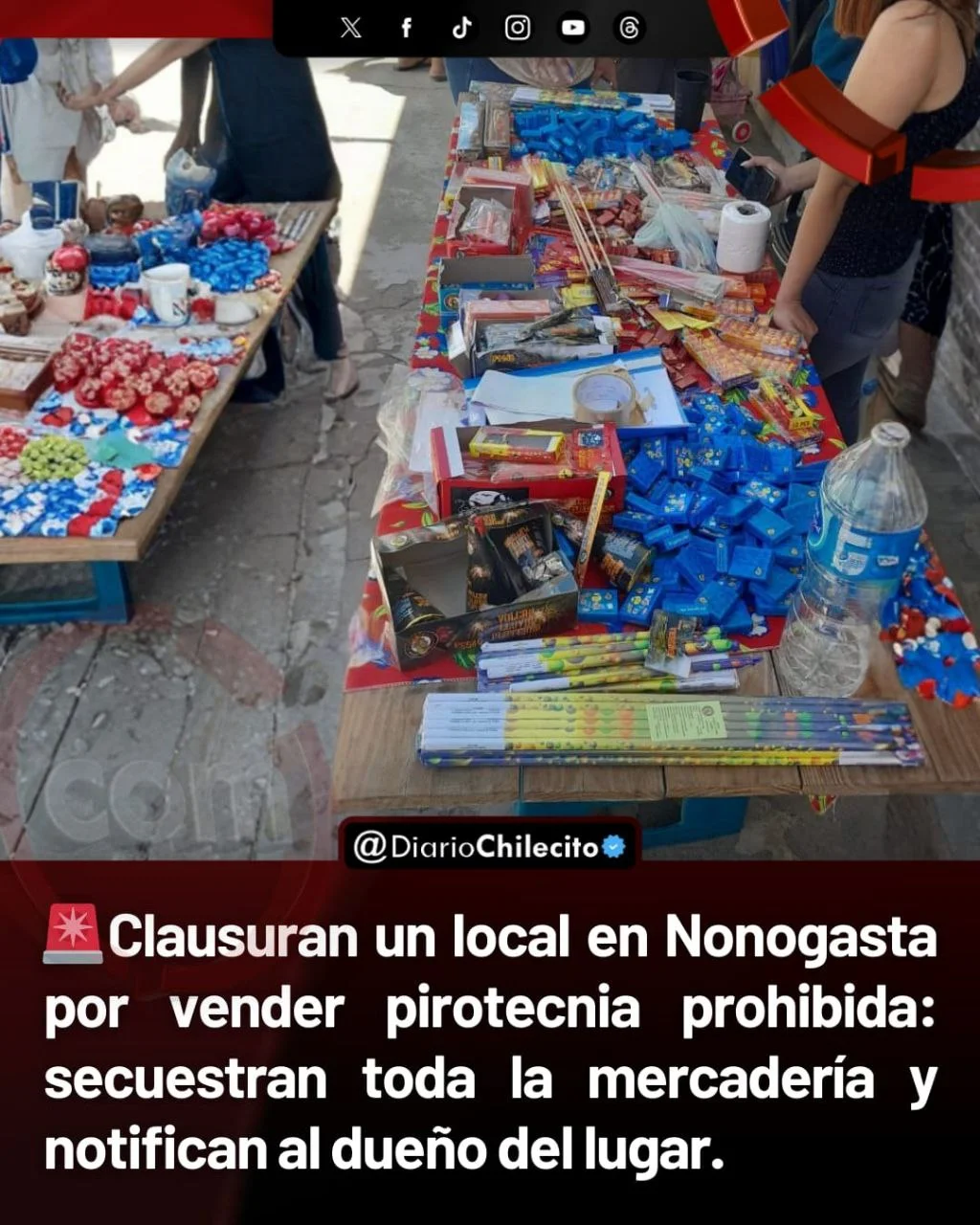 ● Clausuraron el local «Modas Jair» en Nonogasta tras un operativo que terminó con el secuestro total de la mercadería. Saneamiento Ambiental y la Policía llegaron esta tarde a la Avenida Guillermo Iribarren y confirmaron que el negocio vendía pirotecnia sin estar habilitado para eso, aparte de que la pirotecnia sonora está totalmente prohibida en el departamento.