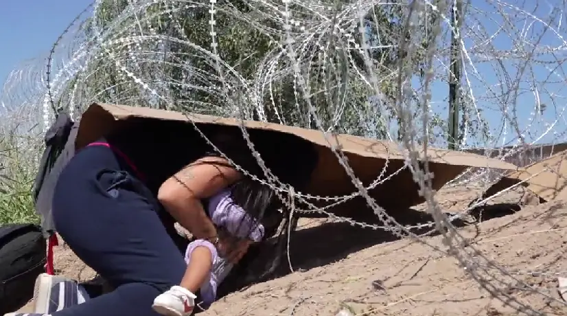Circula en redes sociales un estremecedor video que muestra el momento en que una mujer cruzó junto a su hija pequeña por debajo del cercado de púas que trata de impedir el paso ilegal de migrantes en la frontera de México con Estados Unidos.