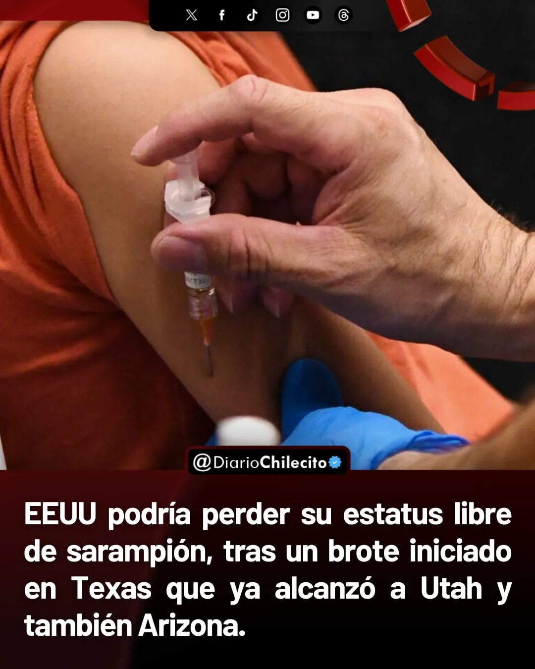 ● Un brote de sarampión iniciado en enero en Texas se expandió a Utah y Arizona, y dejó a EEUU al borde de perder su estatus de país que eliminó la enfermedad. El país reportó 1.723 casos y 45 brotes este año, casi todos en personas no vacunadas, según datos oficiales.