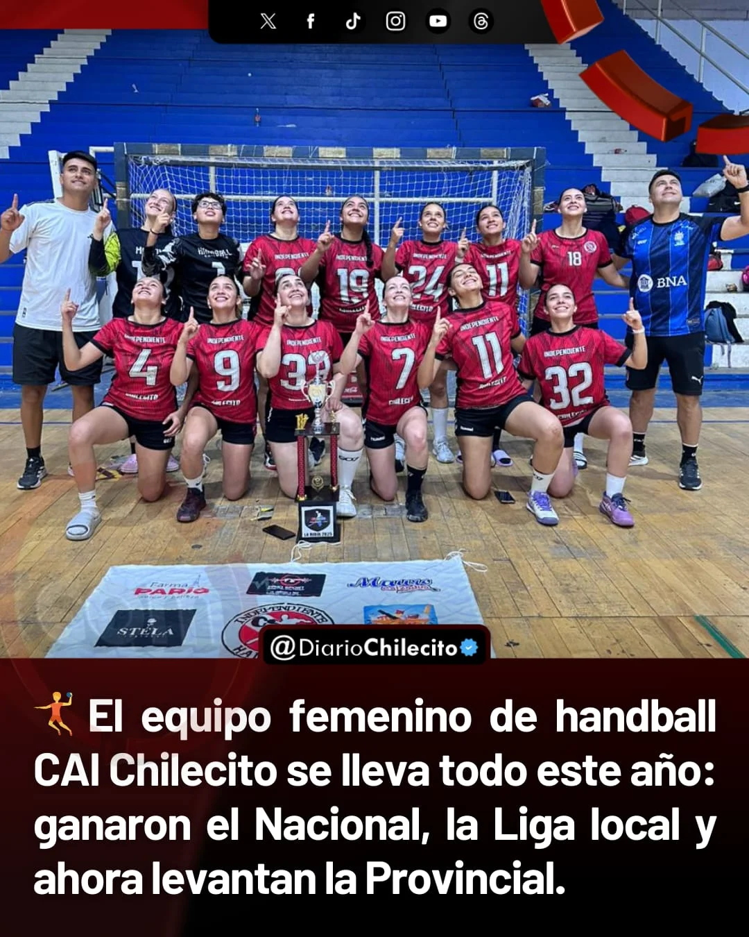 ● Las chicas del CAI Handball de Chilecito tocan el cielo con las manos y se consagran Bicampeonas Provinciales en Primera. En una definición para el infarto, demostraron garra y mucho corazón para quedarse con el Torneo Clausura, confirmando que son las dueñas absolutas de la cancha en un año soñado para el deporte de nuestra ciudad.