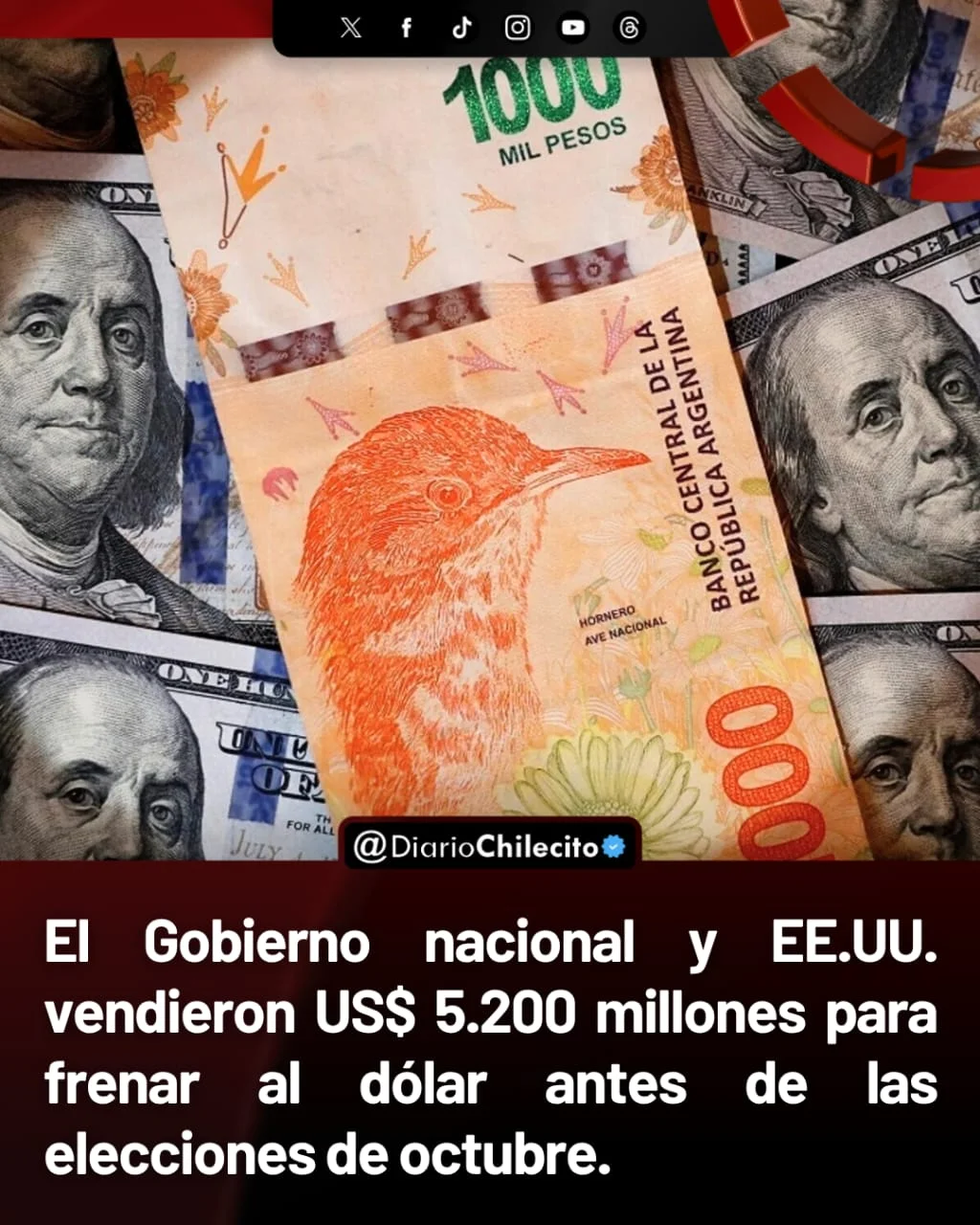 ● En solo tres semanas, el Gobierno argentino y el Tesoro de Estados Unidos vendieron más de US$ 5.200 millones para frenar la suba del dólar oficial. La movida buscó evitar una corrida cambiaria antes de las elecciones del 26 de octubre, en un clima de incertidumbre y caída de los bonos.