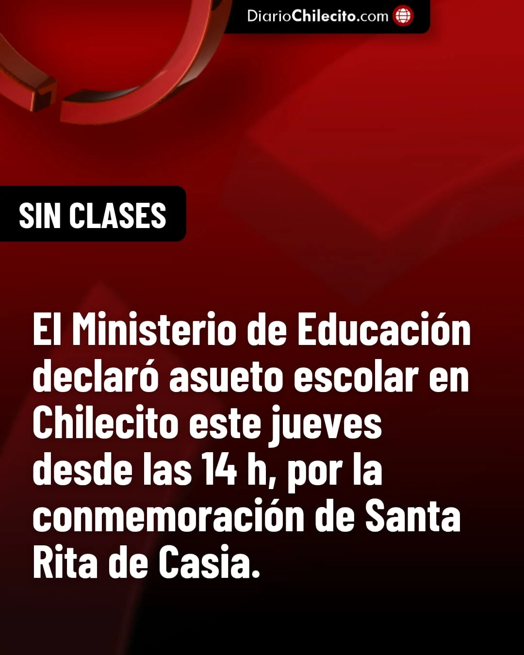 ● La medida se tomó en conmemoración de Santa Rita de Casia, patrona del departamento, y fue oficializada mediante Resolución N° 0224, firmada por la Secretaría de Gestión Educativa.