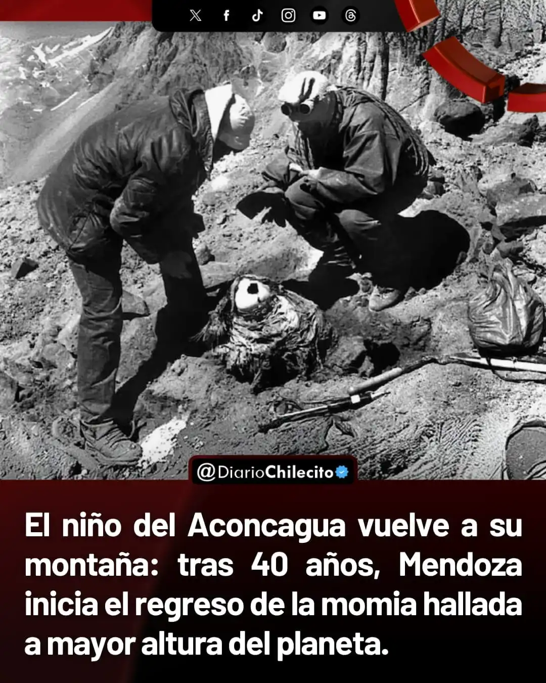 ● El cuerpo momificado de un niño inca hallado en 1985 en el cerro Aconcagua comenzó su camino de regreso a la montaña. Tras pasar 40 años bajo custodia del CONICET, fue trasladado al Museo Moyano de Mendoza, donde se lo prepara para una restitución simbólica.