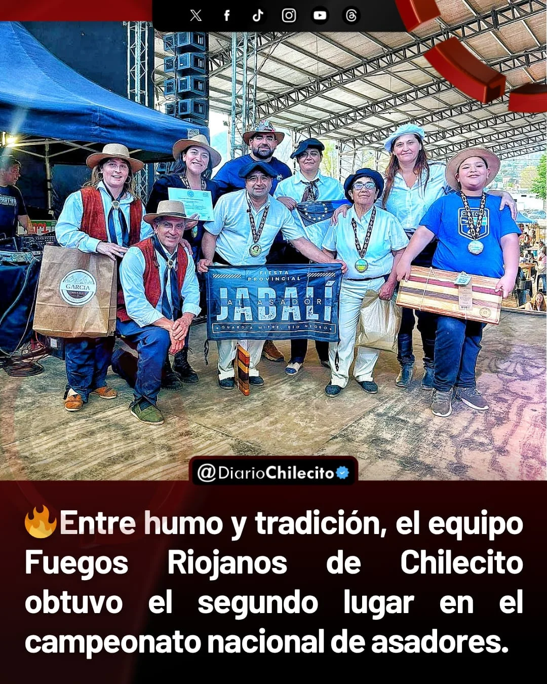 ● El equipo chileciteño Fuegos Riojanos consiguió el segundo lugar en la tabla general del campeonato nacional de asadores a la estaca. La competencia se realizó este fin de semana en Tafí del Valle, Tucumán, y reunió a 80 equipos de distintas provincias.