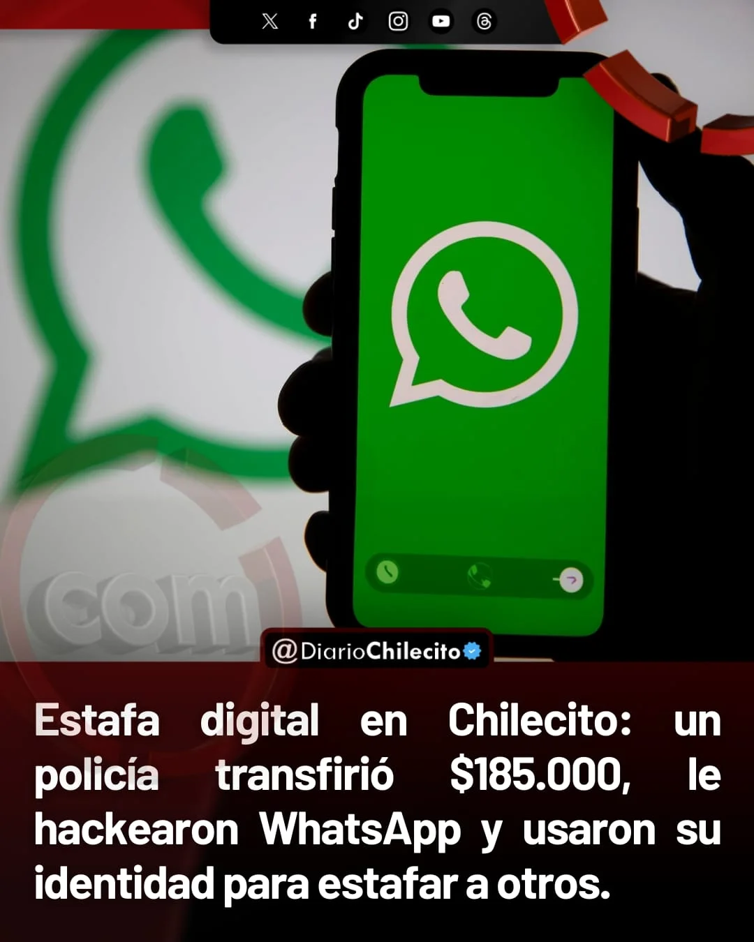 ● Un funcionario policial de Chilecito denunció una estafa por $185.000. El hecho ocurrió ayer por la tarde vía WhatsApp, cuando un contacto que dijo ser un colega le pidió transferencias.