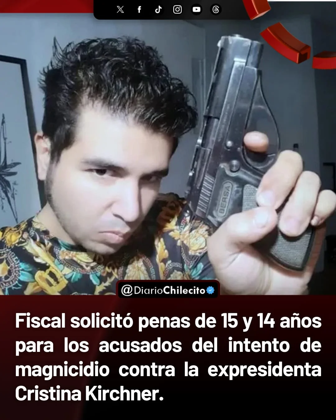 ● El 1 de septiembre de 2022, Fernando Sabag Montiel intentó asesinar a Cristina Kirchner frente a su domicilio en Recoleta. La fiscalía pidió 15 años de prisión para él y 14 para Brenda Uliarte. Además, solicitó la excarcelación de Nicolás Carrizo.