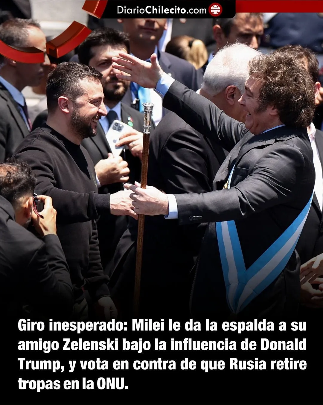 ● Milei modificó su posición internacional al abstenerse de respaldar una resolución que exigía a Rusia retirar sus tropas de Ucrania. Este cambio alineó la política exterior argentina con la de Donald Trump.