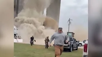 Illinois; Estados Unidos: captaron el momento en que colapsa un elevador de granos. No se registraron heridos, solo daños materiales
