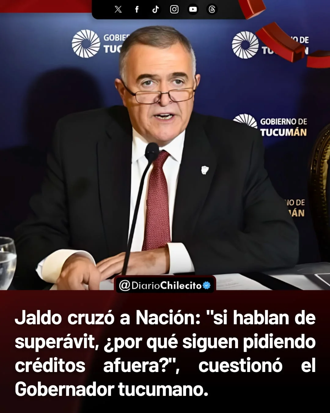 ● El gobernador de Tucumán, Osvaldo Jaldo, habló en conferencia de prensa sobre la situación económica nacional. Señaló que la suba del dólar y del riesgo país golpean a la producción y reclamó que el Gobierno actúe de inmediato.