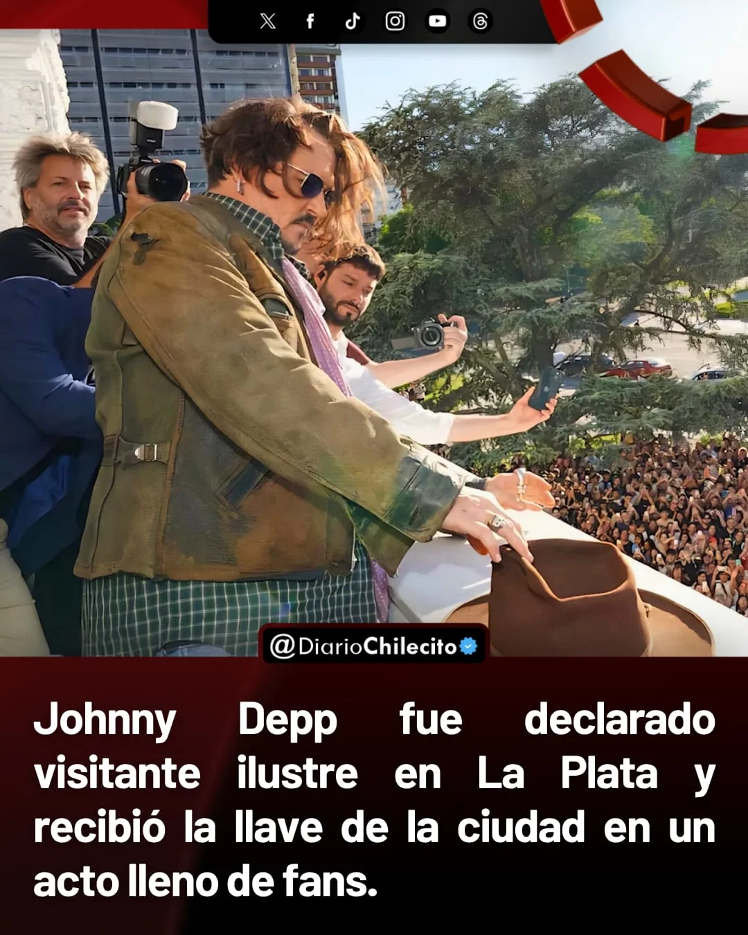 ● El actor estadounidense Johnny Depp fue declarado visitante ilustre y recibió la llave de la ciudad de La Plata. La distinción se entregó en el Salón Dorado del Palacio Municipal, con cientos de fans esperándolo en la puerta. El homenaje busca reconocer su trayectoria artística y su paso por Argentina.