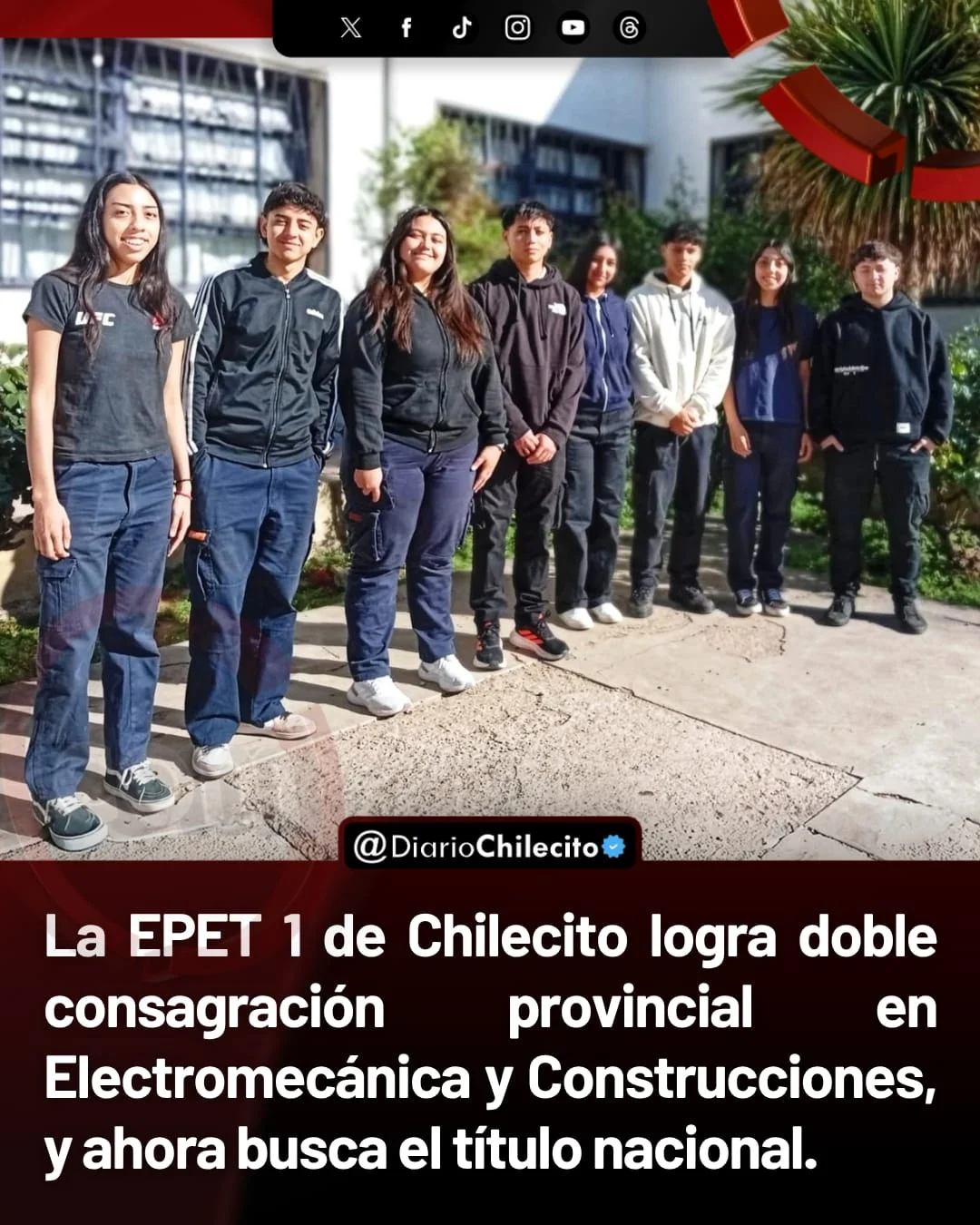 ● Los equipos viajarán a Buenos Aires: Electromecánica competirá el 3 y 4 de noviembre, y Construcciones el 5 y 6. La comunidad chileciteña celebra un logro que demuestra que la educación técnica abre caminos de futuro.