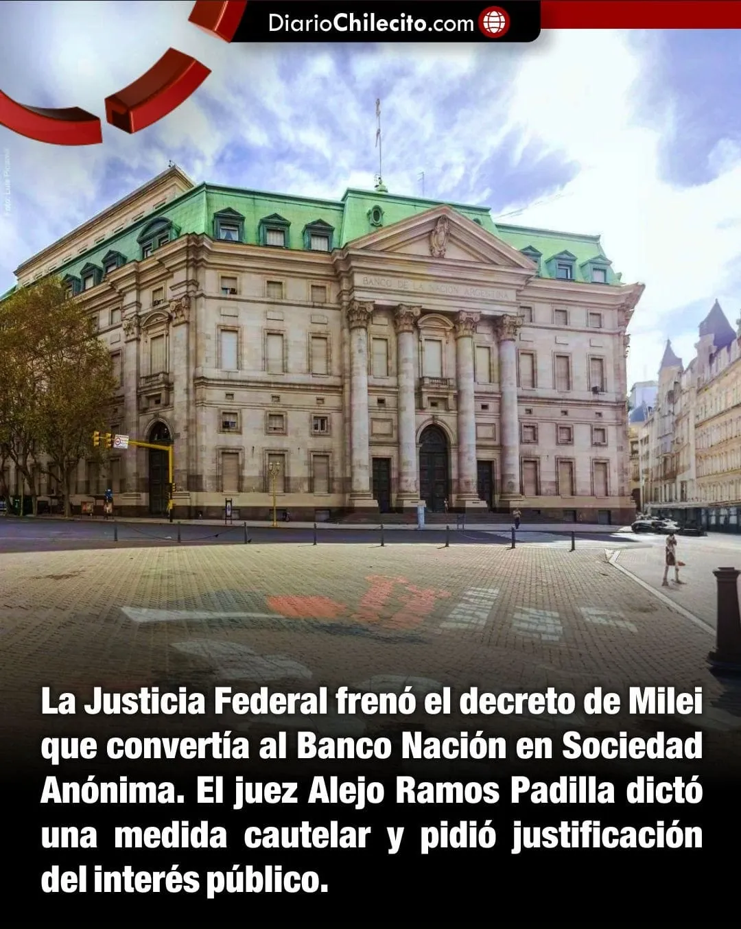 ● El juez federal Alejo Ramos Padilla dictó una medida cautelar para suspender el decreto de Javier Milei, que transformaba al Banco Nación en Sociedad Anónima.