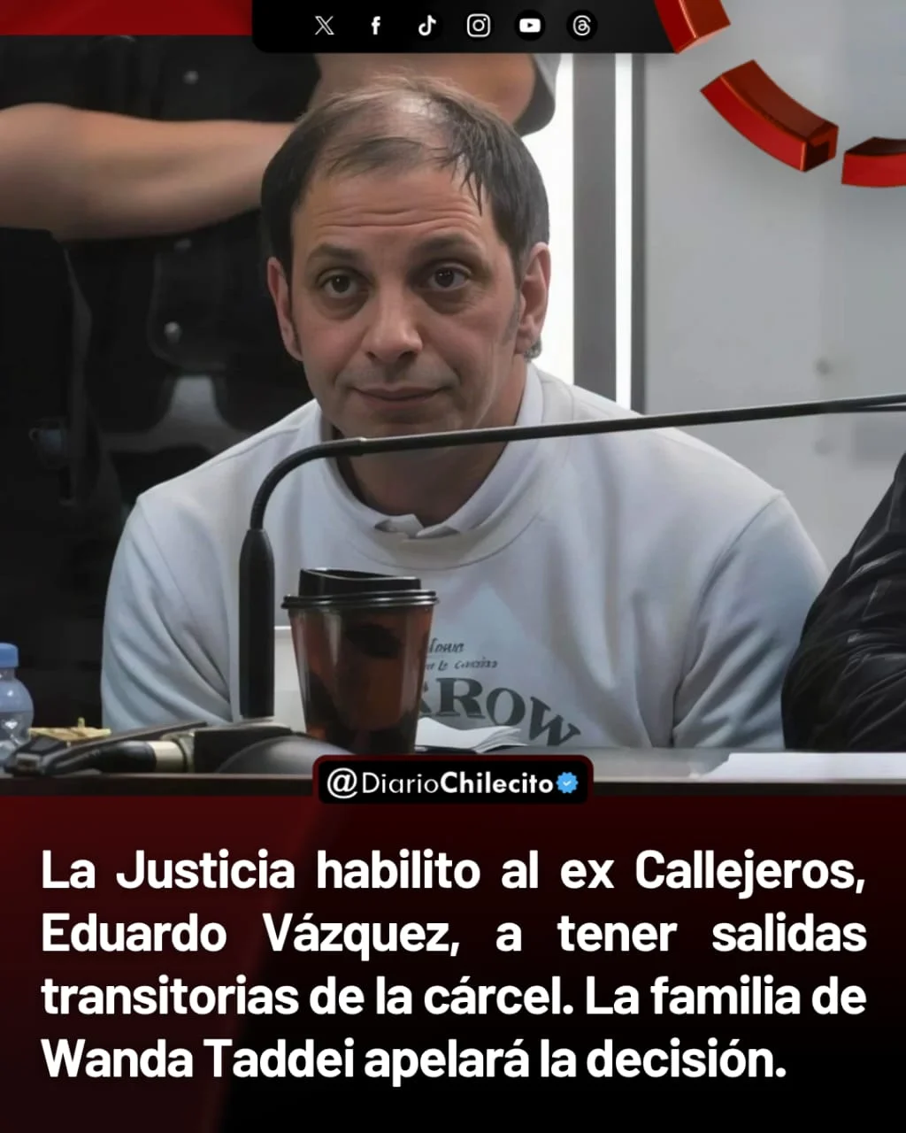 ● El ex baterista de Callejeros, Eduardo Vázquez, condenado a prisión perpetua por matar a su pareja Wanda Taddei en 2010, fue autorizado por la Justicia a tener salidas transitorias de entre 12 y 72 horas. La medida fue firmada por el juez Axel López, tras evaluar informes que destacan una “conducta favorable” y signos de rehabilitación dentro del penal.