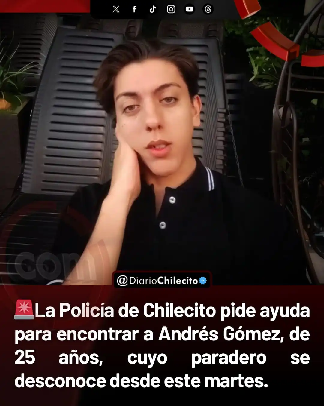 ● La Policía de Chilecito pidió la colaboración de la comunidad para encontrar a Andrés Alejandro Gómez, de 25 años, vecino del barrio Independencia. El joven salió de su casa el martes a las 17:30 y no volvió hasta el momento.