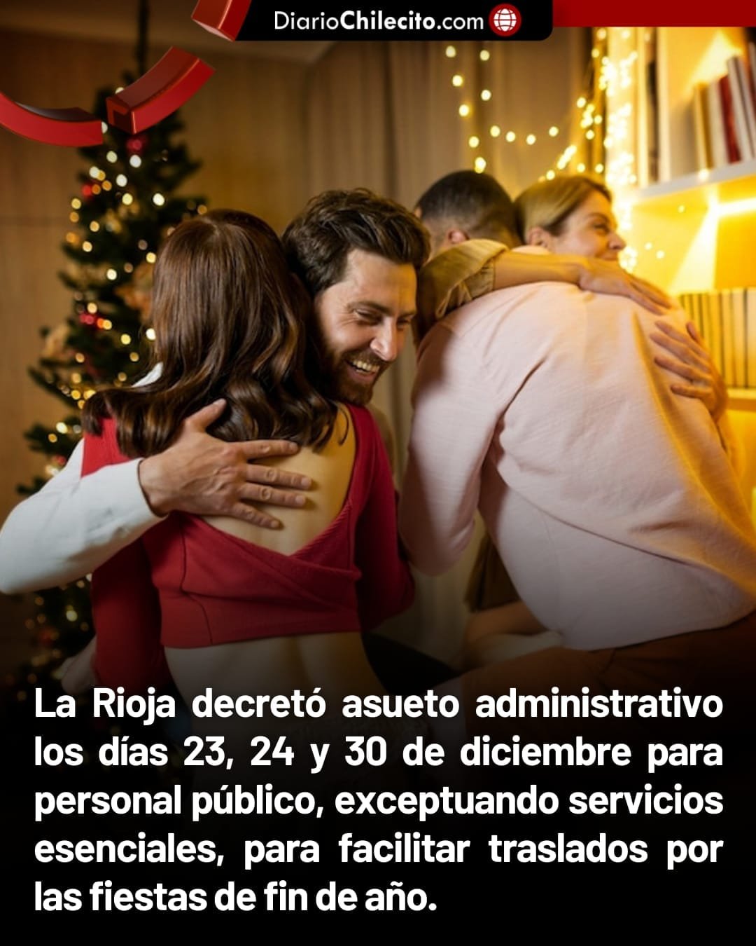 ● El gobernador Ricardo Quintela decretó asueto administrativo para el personal de la Administración Pública Provincial (APP) los días 23, 24 y 30 de diciembre.