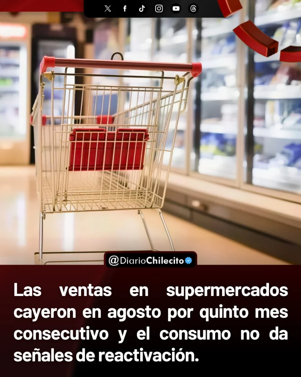 ● En agosto, las ventas en supermercados de Argentina cayeron 0,2 % respecto a julio, según el INDEC, marcando el quinto mes consecutivo de baja. La noticia refleja que el consumo masivo sigue débil y que las familias compran menos productos que antes.