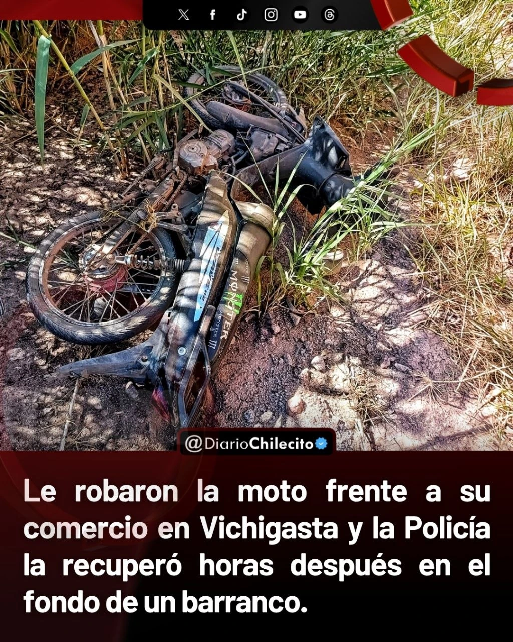 ● La secuencia empezó en barrio San Pablo, en Vichigasta, cuando una comerciante advirtió que ya no estaba la Honda Wave 110 negra que había dejado frente a su local. Según la denuncia, la había visto por última vez unos 30 minutos antes y, al salir otra vez, descubrió el faltante.