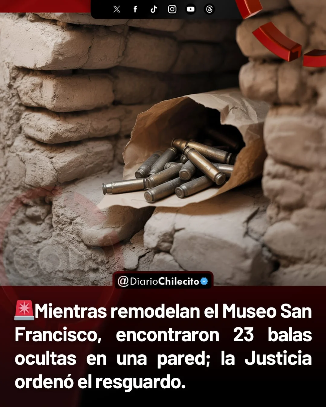 ● La Policía incautó 23 proyectiles en el Museo San Francisco. Fue este lunes a las 12.30, durante obras de remodelación. Intervino la Comisaría Primera y la Oficina de Sumarios Judiciales. El hallazgo llamó la atención porque las balas estaban ocultas dentro de una pared del salón principal.