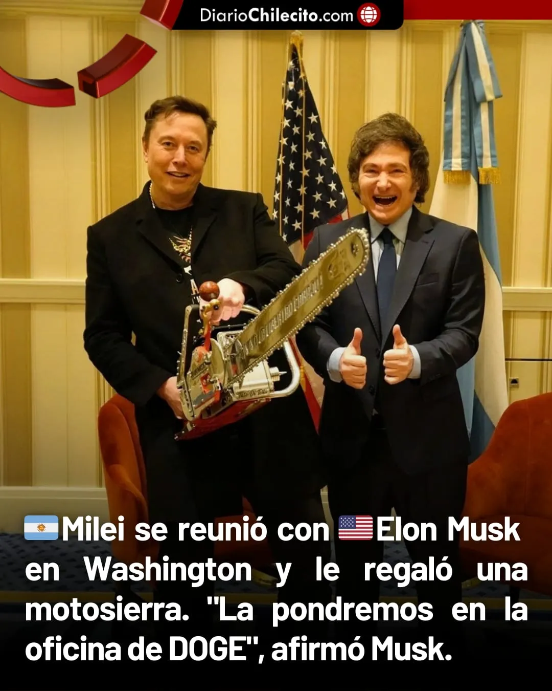 ● Javier Milei visitó Washington y se reunió con Elon Musk, a quien le regaló una réplica de la motosierra que tiene en su despacho.