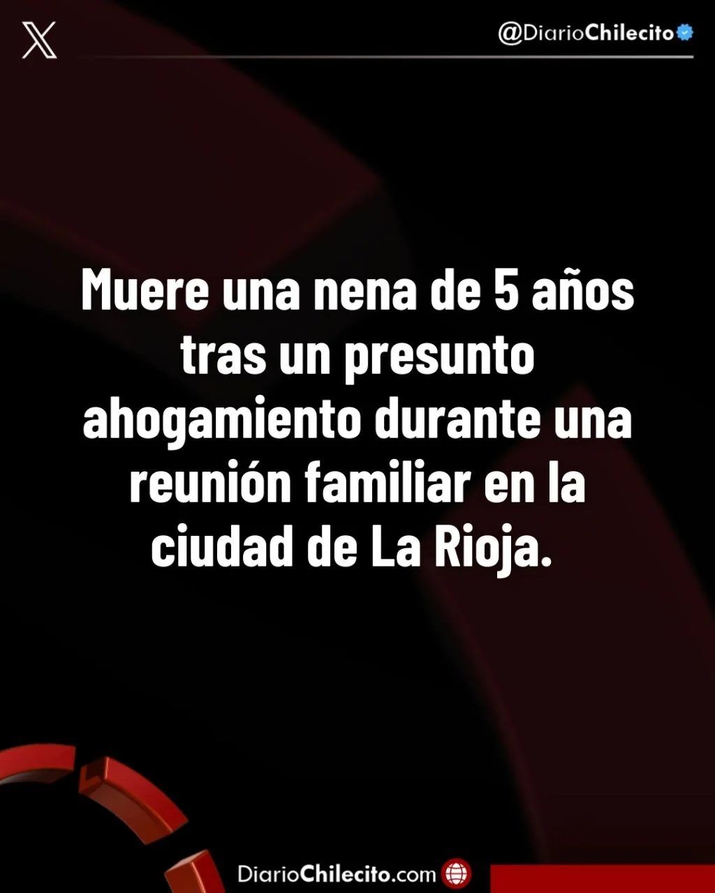 ● Una nena de 5 años llegó sin vida al Hospital Materno de la ciudad de La Rioja este lunes por la noche, luego de un episodio ocurrido durante un encuentro familiar. La menor fue trasladada de urgencia por sus propios familiares, pero no logró ser reanimada. Se trata de Francesca Valentina De Benedictis, con domicilio en el barrio Mirador de la capital.