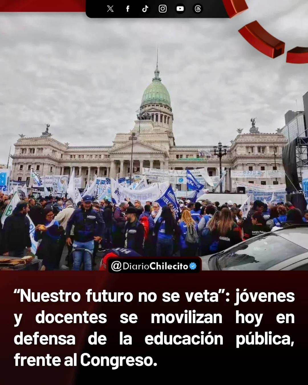 ● Desde las 17, estudiantes, docentes y no docentes marcharán hasta el Congreso bajo el lema “Nuestro futuro no se veta”. La movilización busca presionar contra el veto de Javier Milei a la ley que garantiza más presupuesto y mejoras en salarios y becas.